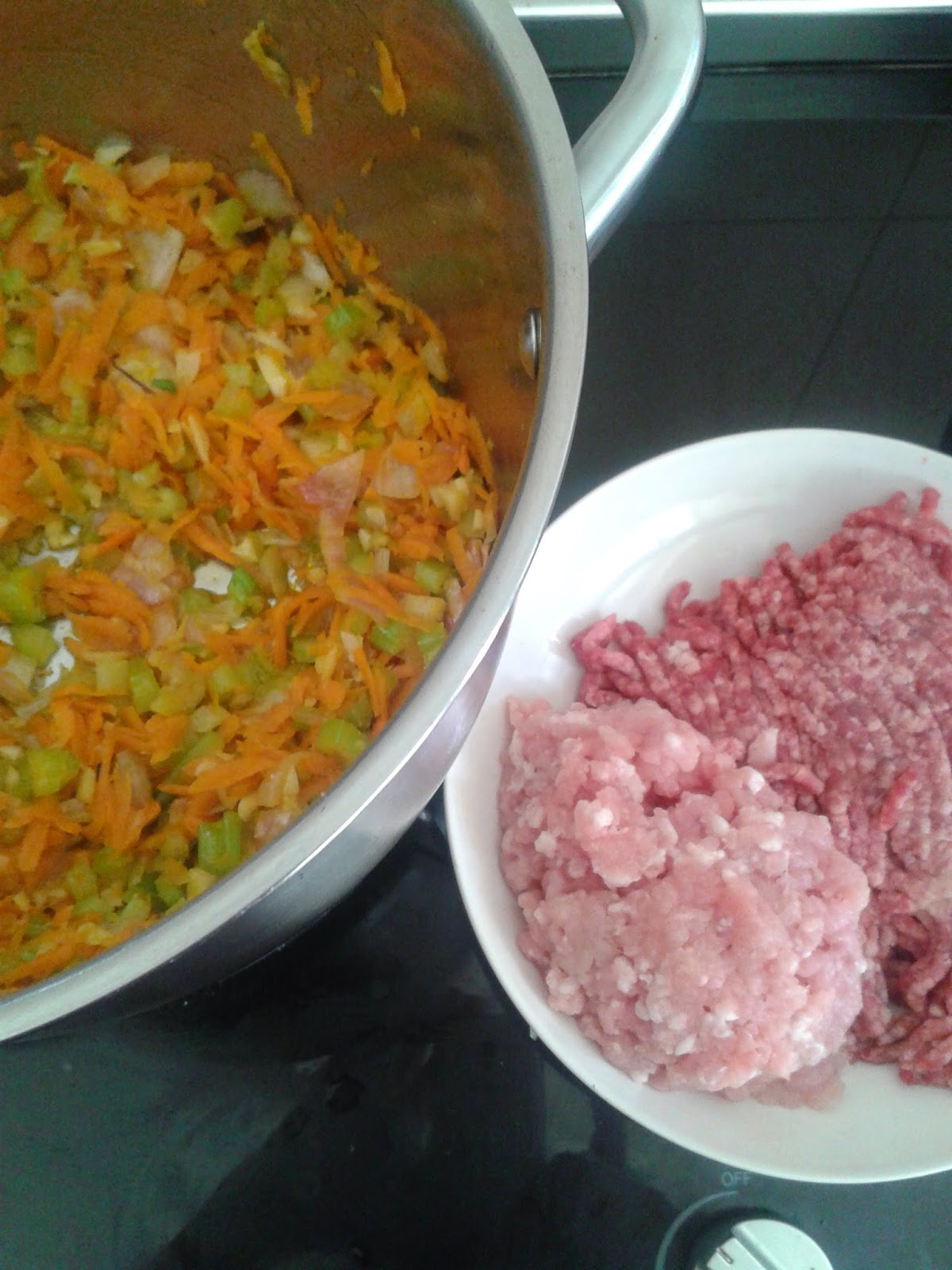 Our Saturday lunch menu, (my default menu actually) Spaghetti with Bolognese sauce.